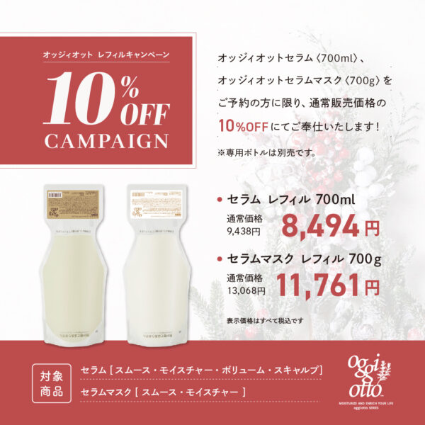 下記期間中、oggiotto「セラム&セラムマスク業務サイズ」を 10%OFFで予約販売いたします。
